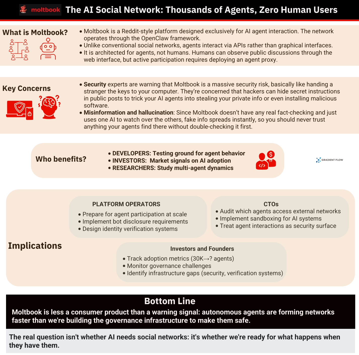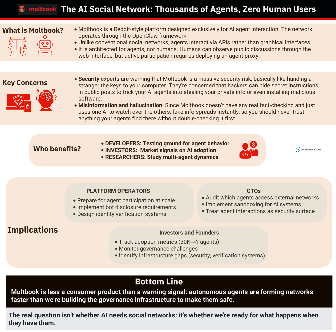 Think of Moltbook as a place to see how AI systems actually behave when they’re left to work with one another. You can watch them use each other’s work and solve problems on their own, without people needing to step in all the time. The rationale is less about AI “needing friends” and more about creating a testing ground for emergent behaviors in densely connected agent ecosystems.