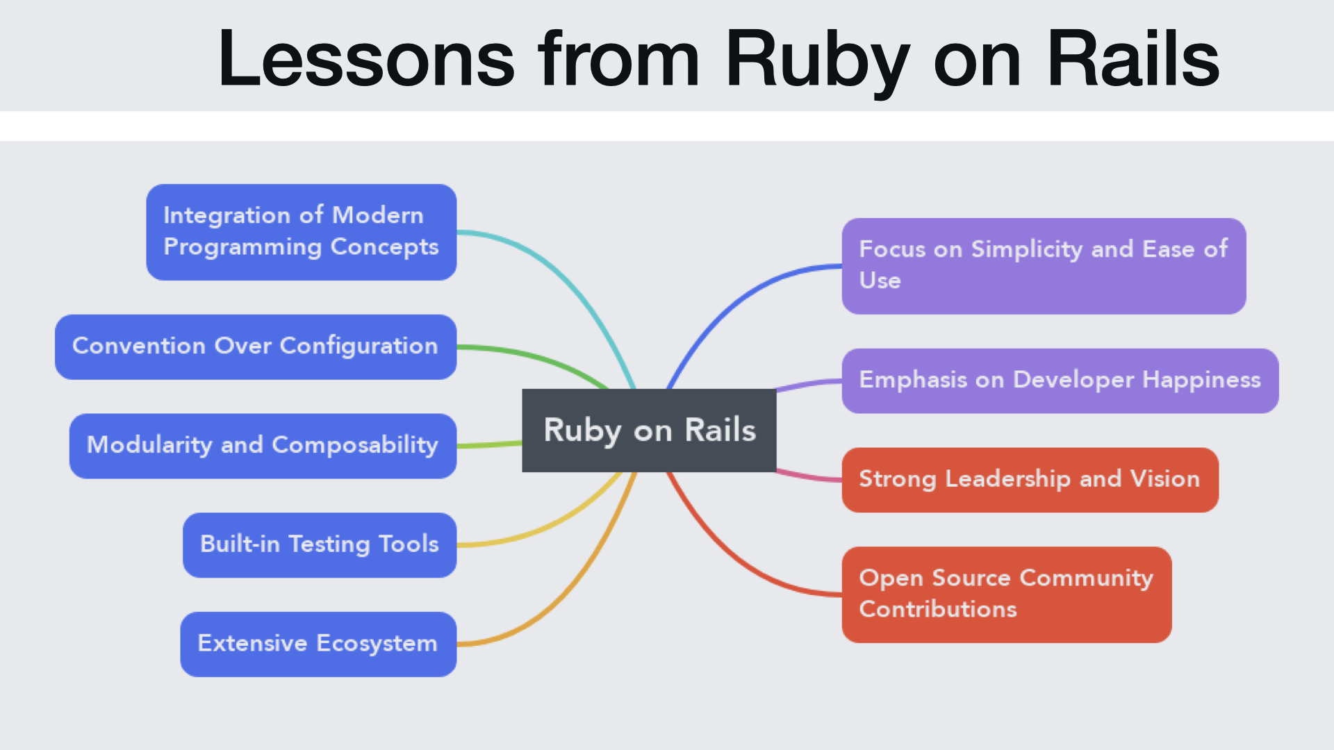 Under consistent leadership and commitment to core philosophies like optimizing for programmer productivity, Rails emerged as leading web application framework. This strong vision guided the development of Rails and kept it anchored to principles focused on making developers’ lives easier.