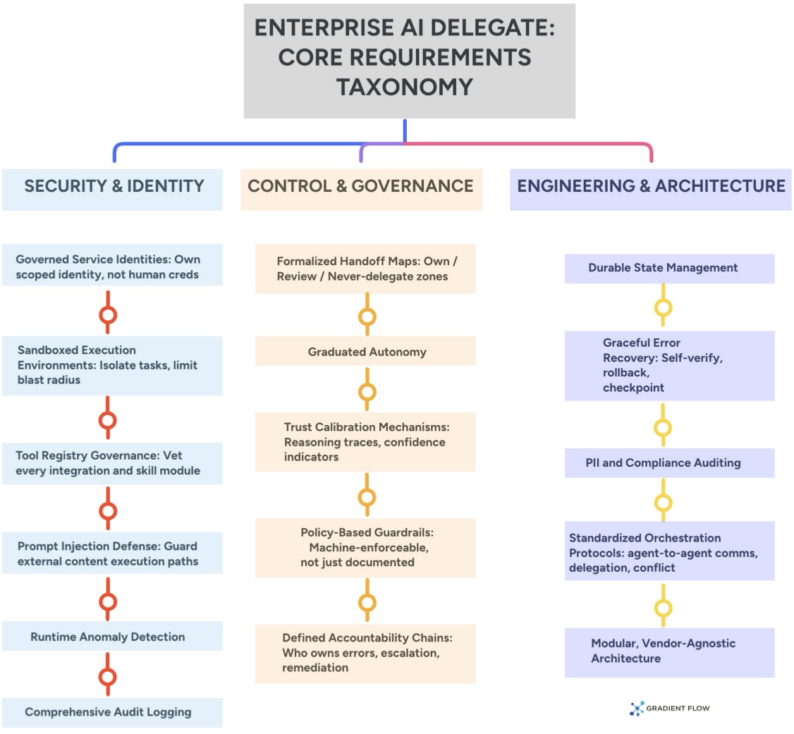Furthermore, delegation must be formalized through explicit handoff maps that define exactly what the system owns end to end and where a human must review the work before the AI Delegate proceeds. Because a single error can propagate widely, enterprise architectures must also include sandboxed execution environments, explicit rollback mechanisms, and durable state management to handle branching and failure recovery. Finally, user interfaces must include trust calibration mechanisms that give humans an accurate picture of what the delegate is doing and why. Overconfidence in agent capabilities leads to under supervision, and under supervision is where the real enterprise liability lives. The organizations that move now to establish this governed, observable, and human in the loop infrastructure will define the competitive landscape.